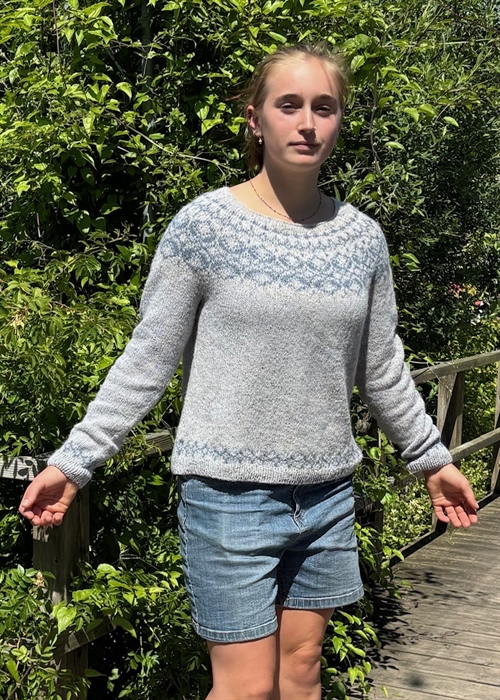 Denne model af Isabell Kræmer er strikket i Super Tweed: